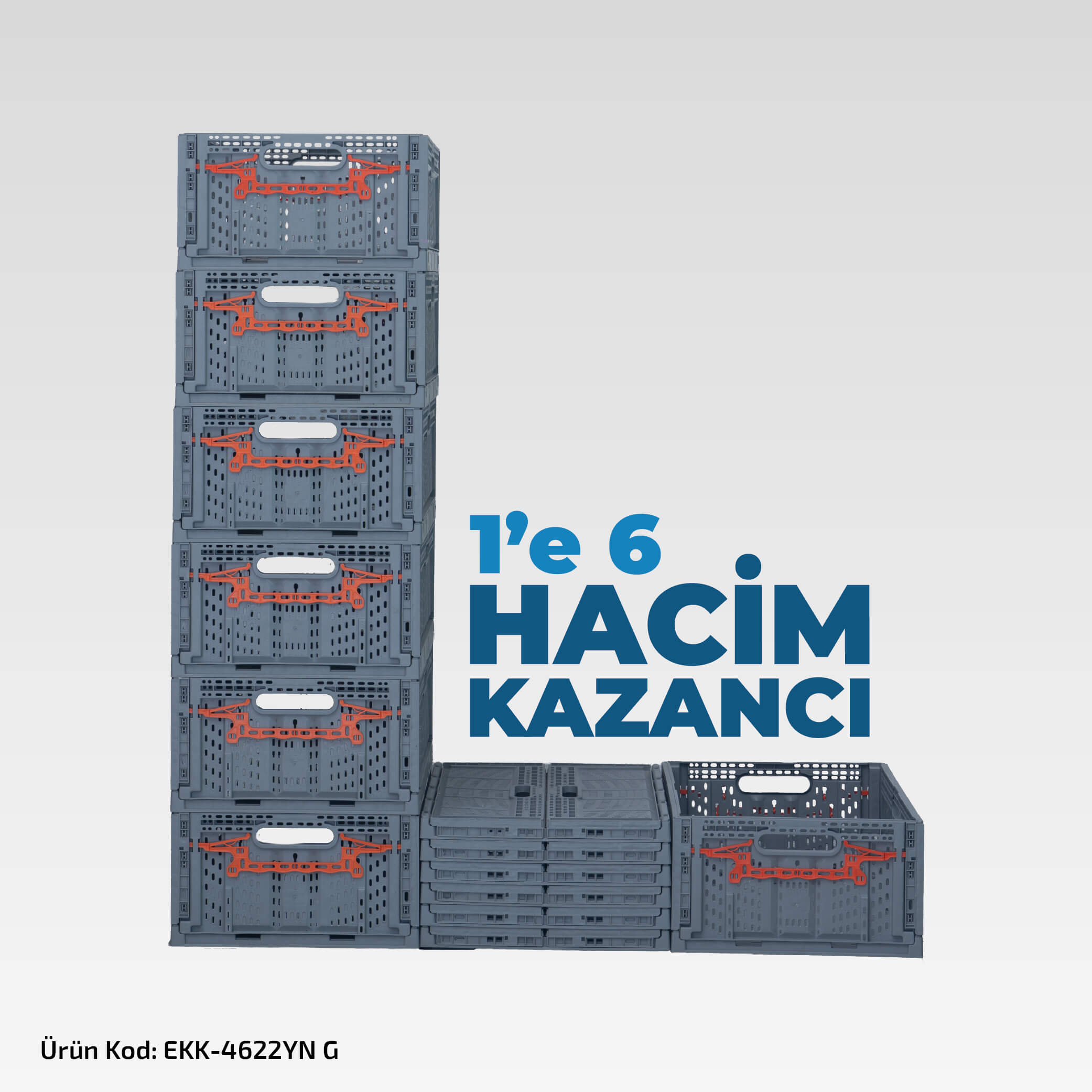 EKK-4622 YN G 60x40x22 Yeni Nesil Katlanır Kasa – Gri